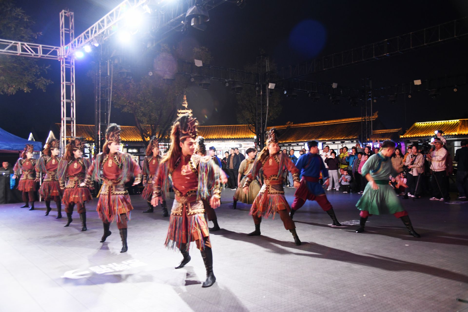 烏蘭牧騎隊員在石家莊正定古城進行街頭路演。